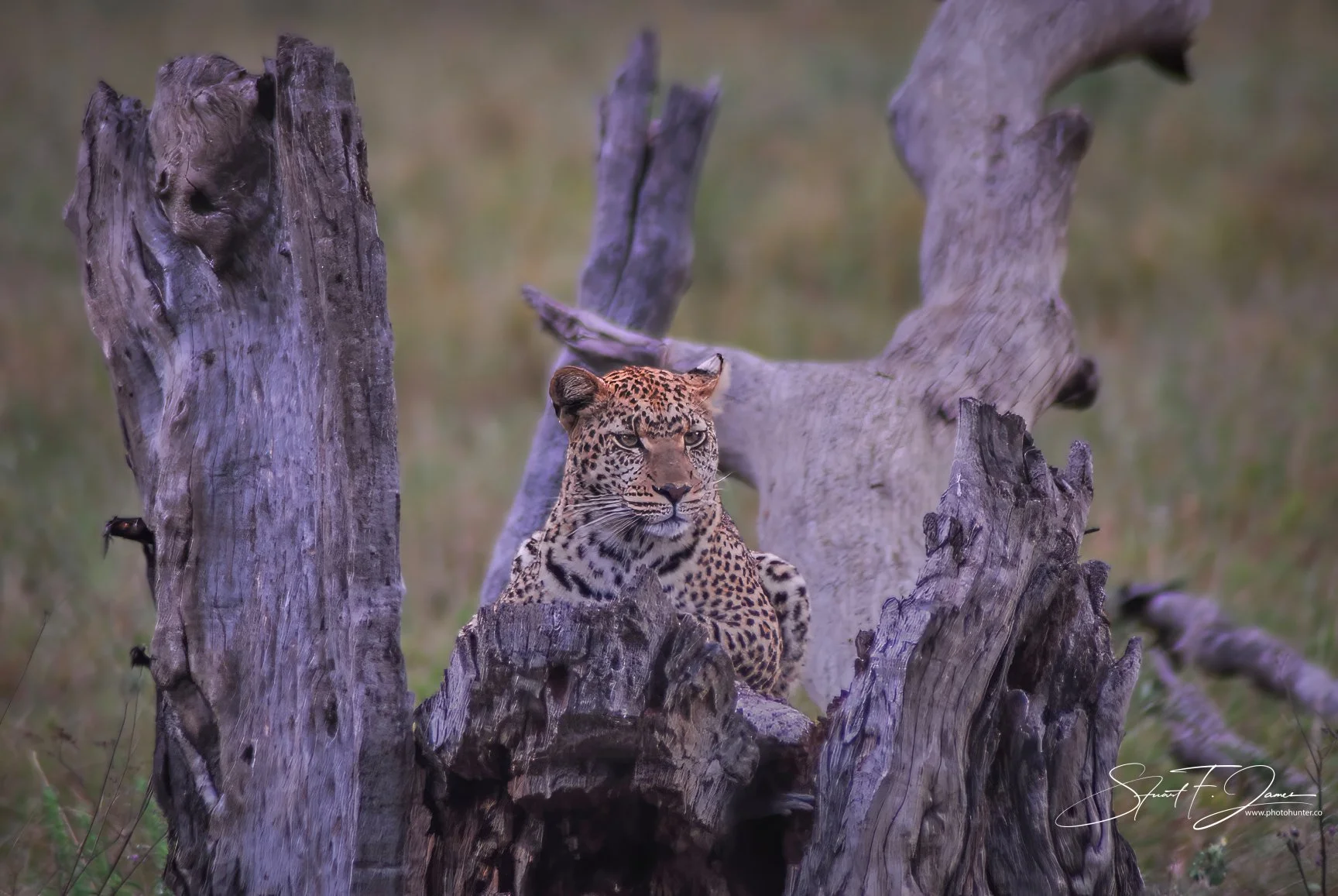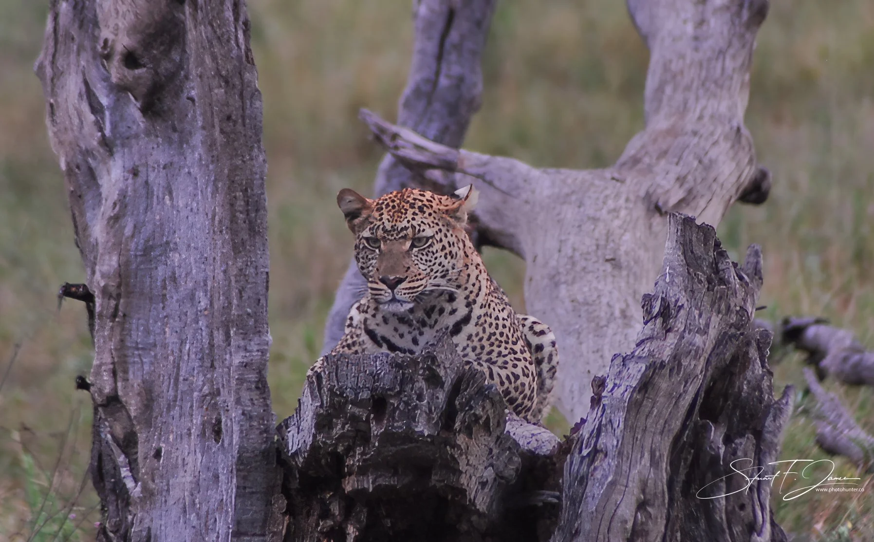 The leopard sat on the tree for about 5 minutes. Fortunately, my guide was patient, allowing me to capture this unique moment. Moreover, it was only our guide, Peter, my wife, and daughter on this safari, and there was no other tour or safari expedition in sight.